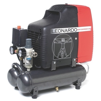 Переносной компрессор Fiac Leonardo оснащён электродвигателем с пониженными оборотами, что значительно снижает громкость работы. Процесс нагнетания в данной модели происходит с помощью безмасляной поршневой группы, дающей на выходе абсолютно чистый сжатый воздух.