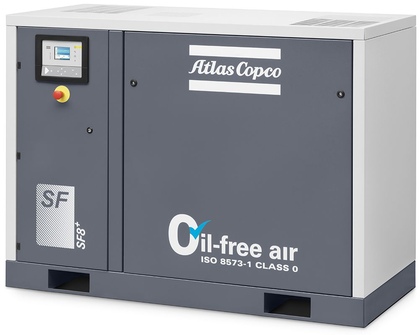 Безмасляные спиральные компрессоры Atlas Copco SF обеспечивают 100% чистый сжатый воздух без примесей масла в таких важных сферах как: научно-исследовательские лаборатории, больницы, стоматологические клиники и предприятия питания. Эти компрессоры соответствуют требованиями ISO 8573-1 Класс 0, они просты в эксплуатации и обслуживании и занимают минимум места, экономя пространство на вашем предприятии. Компрессоры серии SF исключают риск загрязнения маслами. Версия мультиблок предполагает несколько одноступенчатых компрессорных элементов с электромоторами класса IP 55, с защитой от перегрева. Мультиблок имеет входной фильтр и концевой доохладитель. Оснащен электродвигателем с КПД до 94,5%, класс энергоэффективности IE3. Оборудован микропроцессорным модулем Elektronikon Mk5 Graphic.